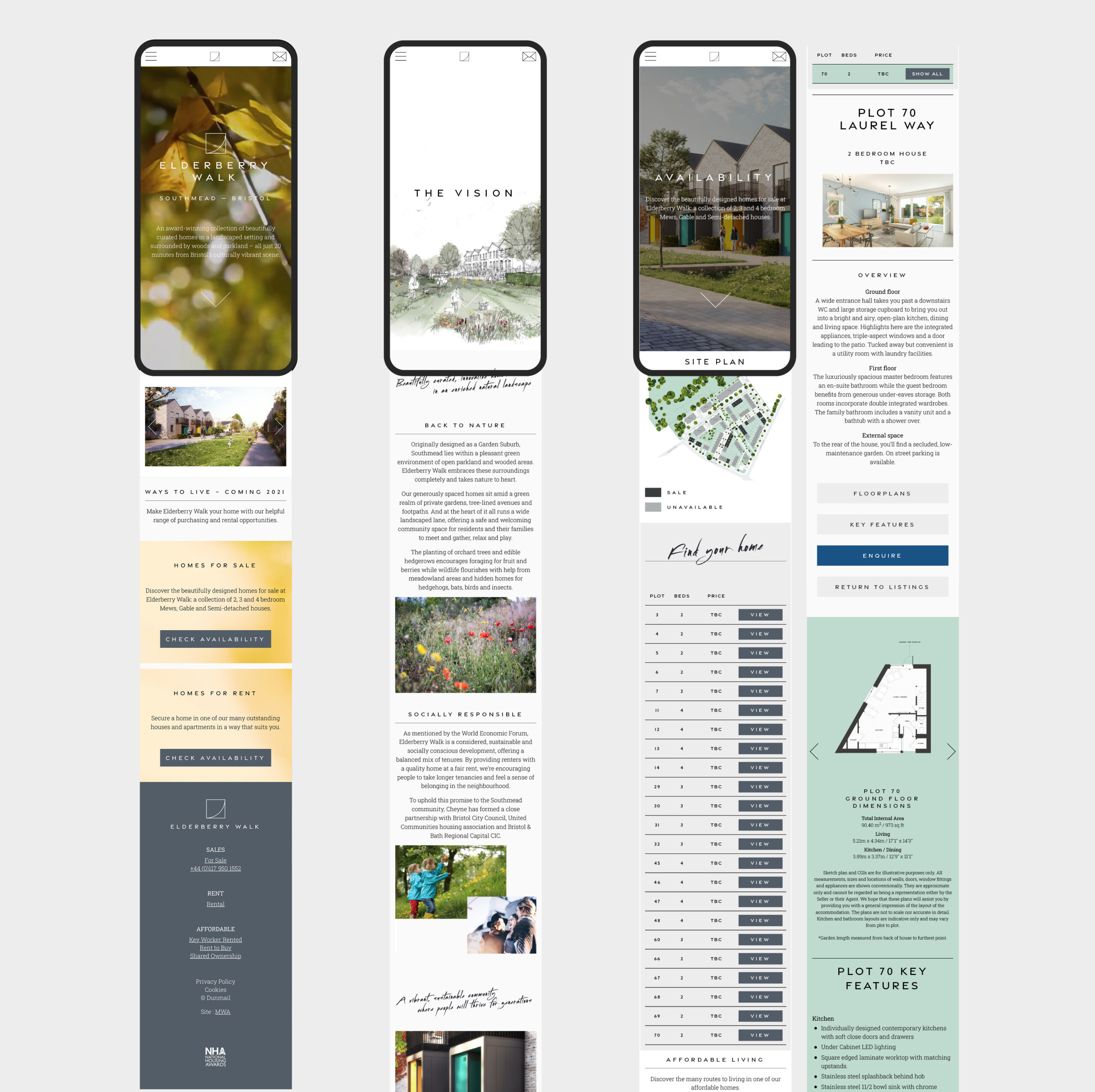 Elderberry Walk is a sustainable mixed tenure scheme of 161 private and affordable homes with rich landscaping linking to open parkland in Southmead, Bristol. Following an initial market launch with branding that the lead investment fund felt was misaligned, I was commissioned to re-establish the brand and create a new identity and digital experience to strengthen the sales journey.